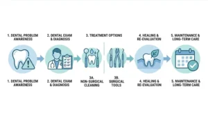 | Scaling & Root Planing | Deep cleaning of roots to remove plaque/tartar (no surgery) | First-line for mild/moderate gum disease |